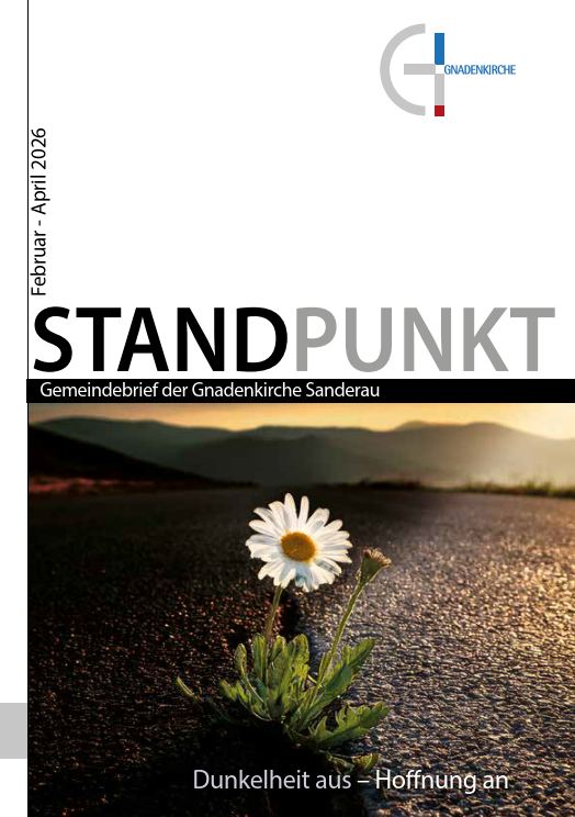 Standpunkt ist der Name unseres Gemeindebriefs, welcher alle drei Monate erscheint. „Standpunkt“ wird im Duden definiert als Betrachtungsweise, Blickwinkel, Gesichtspunkt, Perspektive aber auch Anschauung, Ansicht, Meinung, Position, Überzeugung. Mit unserem Gemeindebrief wollen wir Sie ein Stück mit hinein in unser Gemeindeleben nehmen. Wir laden herzlich zu allen Veranstaltungen und Gottesdiensten ein und freuen uns, Sie bei nus begrüßen zu dürfen.